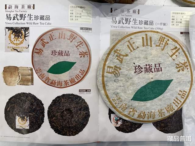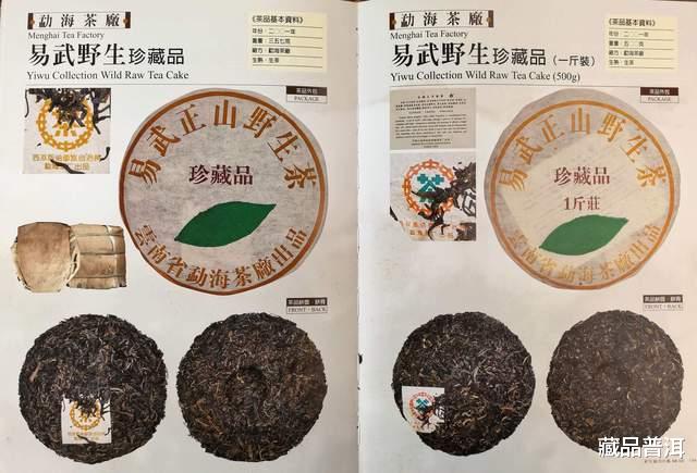 357克茶饼版面上,印着“易武正山野生茶-珍藏品”字样,下面就是那片标志性的全绿树叶,底部备注勐海茶厂生产。500克茶饼的版面则多了“一斤装”的字样。