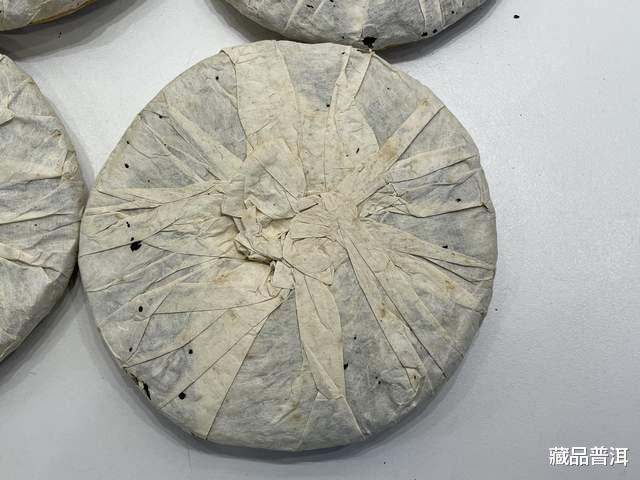 需要注意的是,357克一片叶的背面是塞窝包法,勐海茶厂早年的茶也不都是螺旋包一把抓的包法,像01年紫大益断南也是塞窝包。