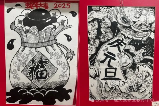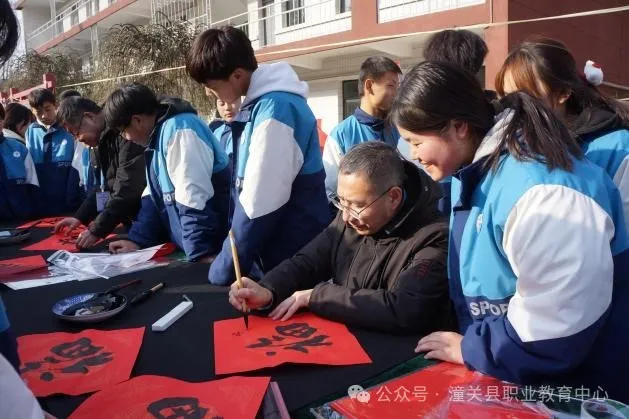 在整个活动过程中,最激动人心的当属现场创作互动环节。在学生们的簇拥下,书法家们尽情挥毫泼墨,现场书写福字与新春对联。他们运笔自如,笔锋在纸上流转,一个个精美的汉字瞬间变得立体生动。艺术家们精湛的创作技艺和深厚的艺术功底让师生们赞叹不已,现场不时响起热烈的掌声。