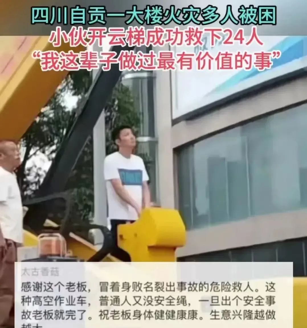 其中让人泪目的是,在火灾发生后的危急关头,眼看着大厦窗户里不断有人探出头来呼救,正在附近不远处作业的小伙,二话不说就开着云梯来到现场救援,总共救出了24人。