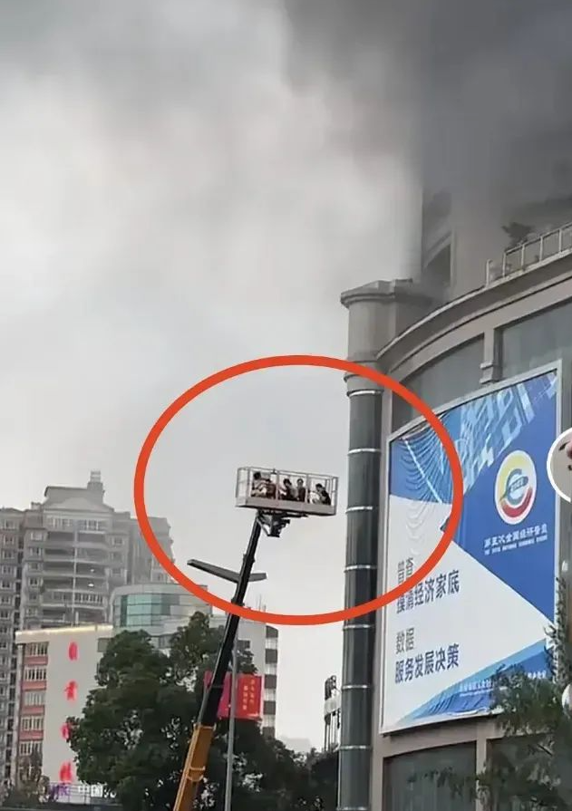 从火灾现场流传出的图片,也的确可以看到,在大厦高层的某间写字楼阳台上,浓烟滚滚里站着几个头戴安全帽,企图逃生的工作人员。