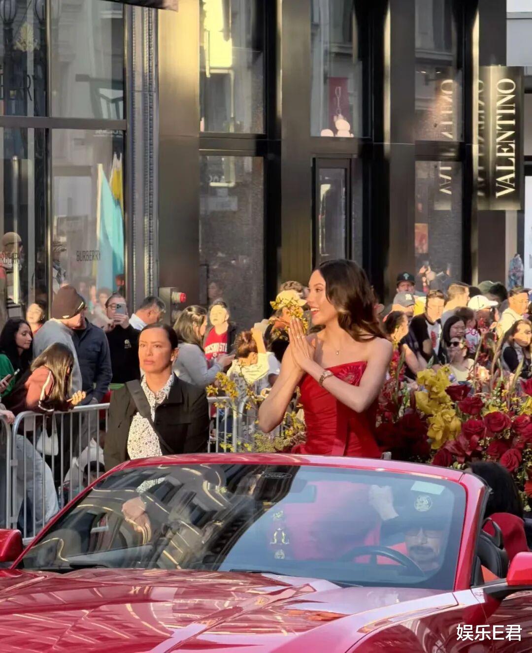 据悉,现年22岁的谷爱凌担任新年花车游行的总领队(Grand Marshal),数以万计观众在街道两旁观看。