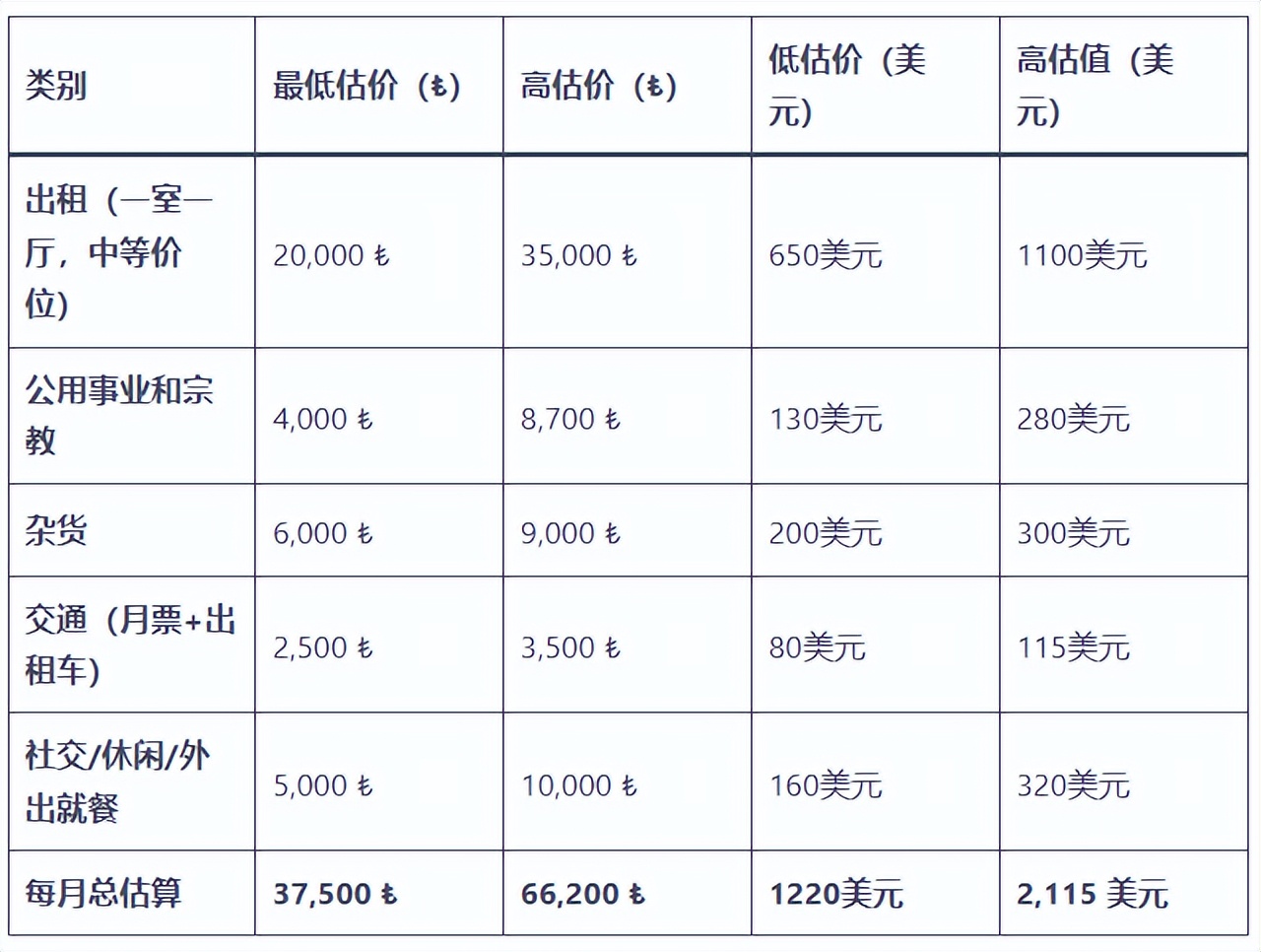 2026年伊斯坦布尔单身外籍人士每月生活成本概要
