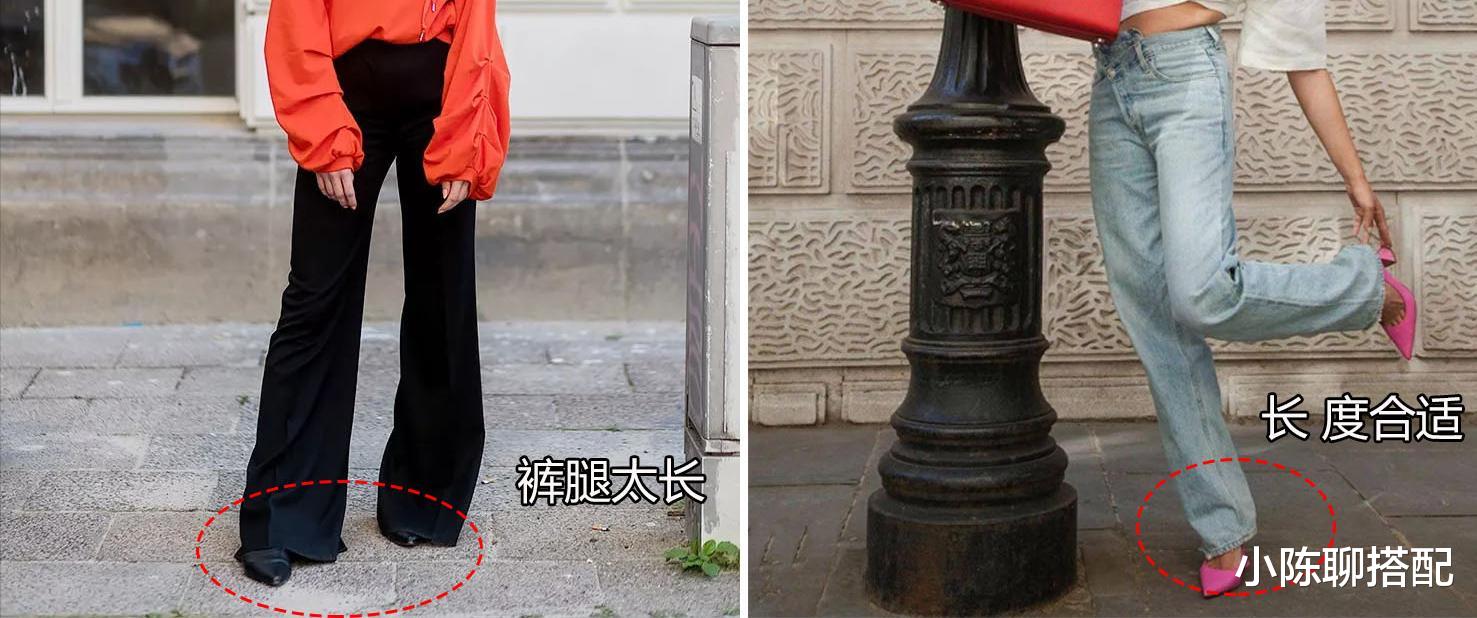 比如阔腿裤裤管太宽,会造成视觉上的累赘感,尤其是梨形身材,会显得身材很“魁梧”。选阔腿裤,要选择裤腿宽度适中。如矩形身材选择窄版的阔腿裤,可以显得干练不拖沓;而腿型有一些小短板,不直、O型腿,宽松版本的裤腿则更适合扬长避短。