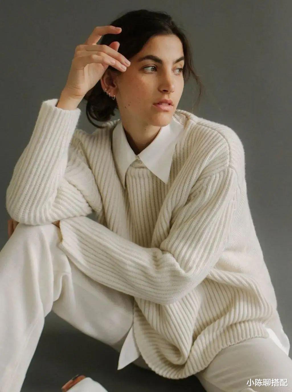 比如说毛衣叠穿衬衫,最出彩的细节是有了层次感,将领口、袖口、衣摆露一截在外面,可以有效带来美感。