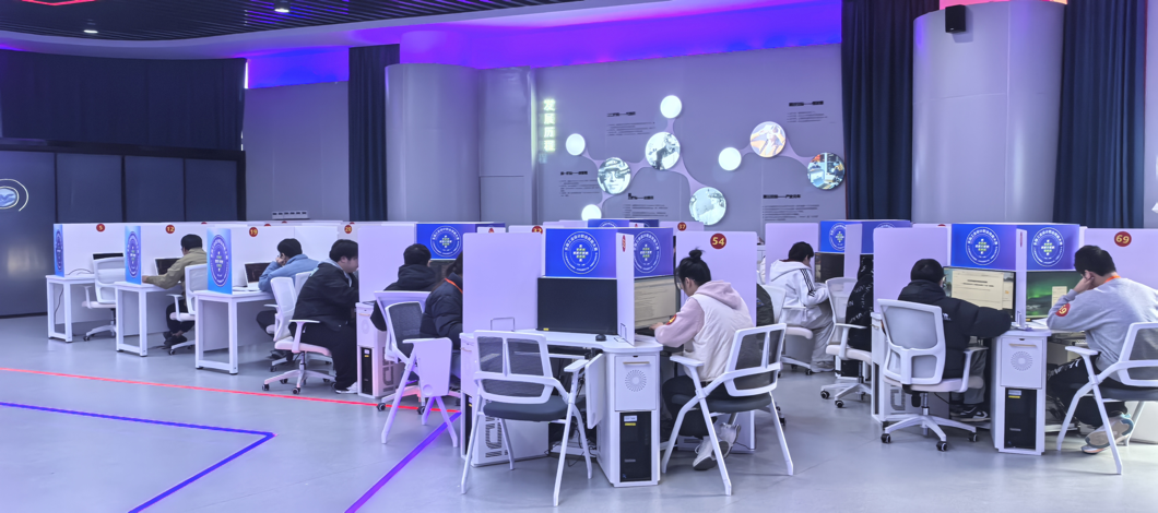 图为本届大赛江苏选拔赛人工智能训练师赛项比赛现场。