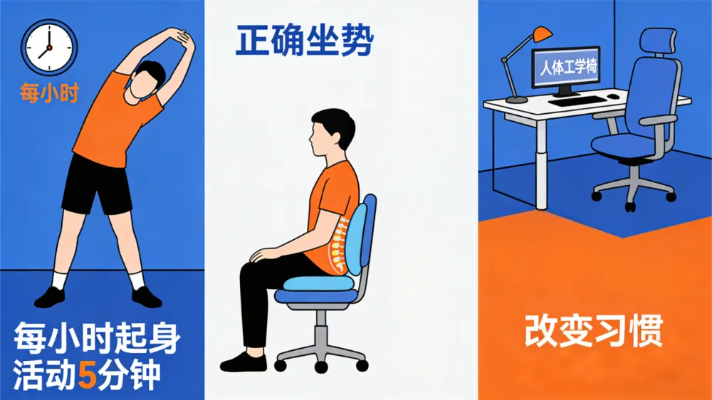 改变生活习惯是避免复发的关键,包括打破久坐、改善姿势和优化人体工学。建议每小时起身活动5分钟,进行简单的伸展或锻炼;保持正确的坐姿和站姿,选择合适的座椅;调整办公环境,选择合适的鞋子,注意日常搬重物和爬楼梯的姿势。这些改变不仅能减轻臀肌的压力,还能改善整体的身体姿态和功能。
