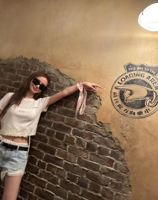 在第2张照片中,杨颖身着白色露腰短袖 T恤搭配牛仔热裤,大秀纤细腰身与笔直长腿,一头染色长发随意披散,整个人洋溢着青春活力,丝毫看不出已为人母。