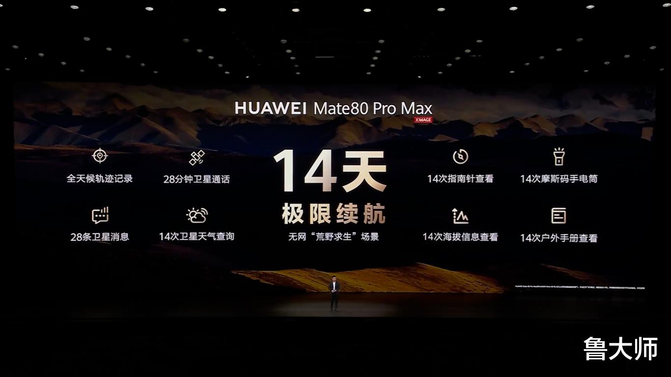 如果是极限续航,Mate80全系还新增了户外探索模式,开机且开启该模式状态下,Pro Max版本最长能实现14天的续航。