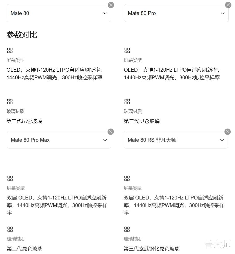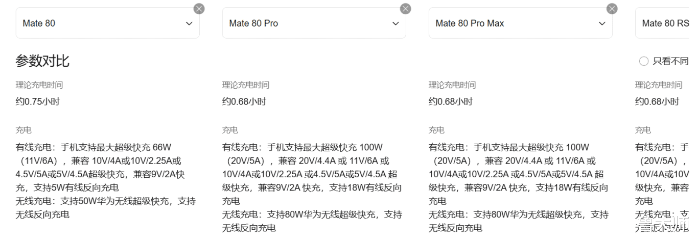 中框除了Mate80 RS外,其余3款都是铝合金,更高一档的RS版则是独占钛合金,且后盖为第二代昆仑玻璃材质,完全与Pro系列独立开来,真“等级森严”。