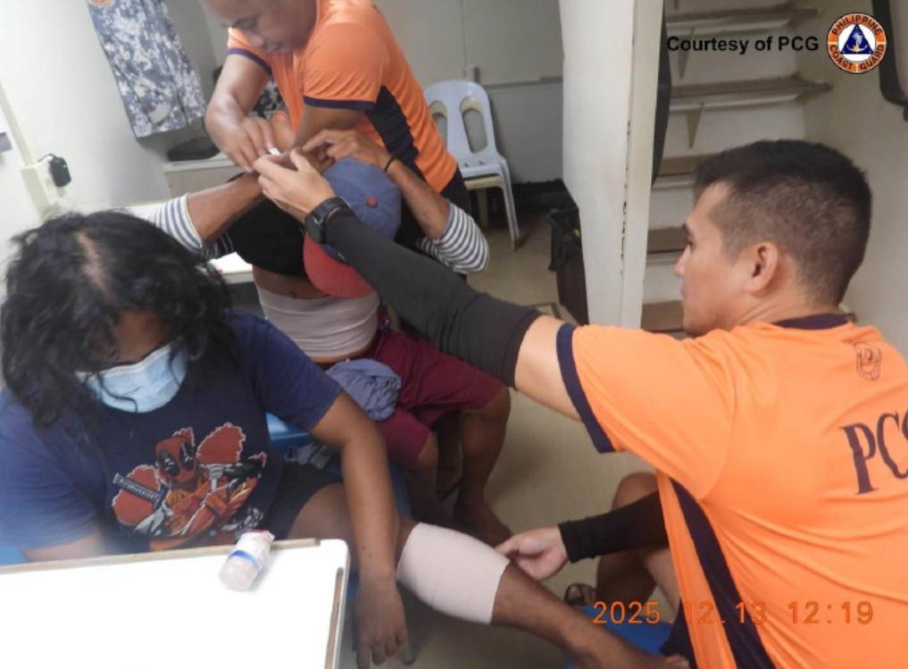 紧接着,菲律宾海岸警卫队公开了菲律宾渔民正在包扎伤口的照片。