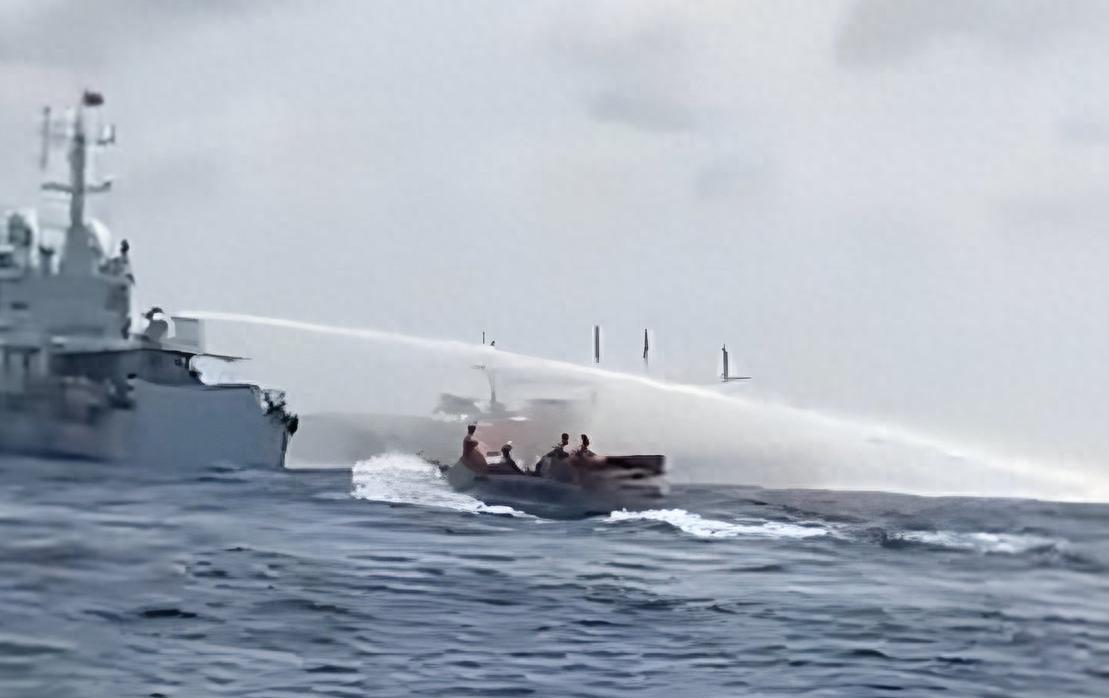 菲律宾这数十艘渔船刚要接近仙宾礁,立马就遭到了我方海警船的管制和拦截,即便是渔船,也受到了“水炮待遇”。