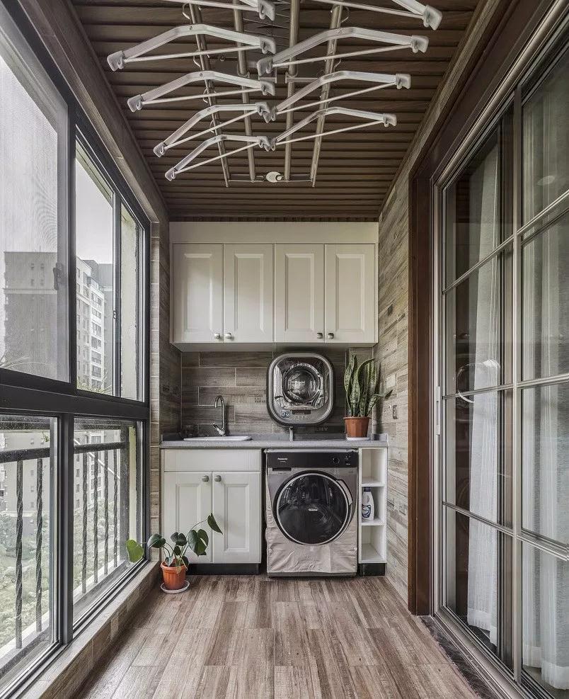 为了增加实用性,可以在玻璃隔断上安装折叠晾衣架,这样既能保护洗衣机,又能充分利用空间。