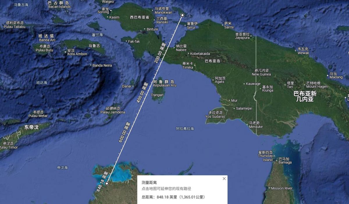 (从马努华基地到达尔文大约是1300公里出头)