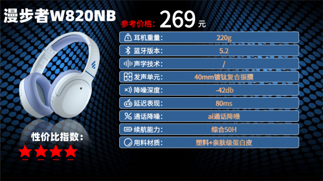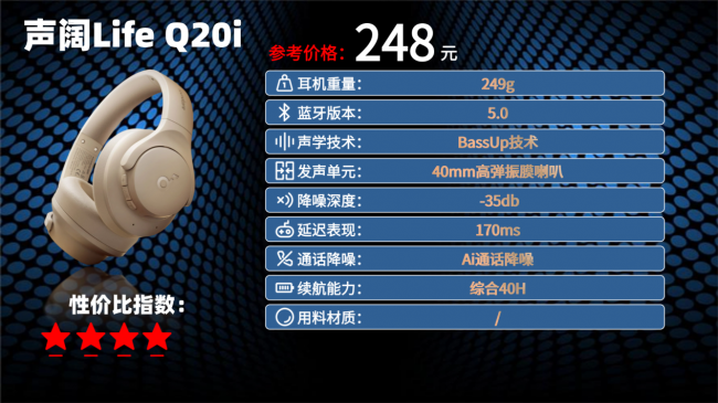 2026性价比最高的头戴式耳机是哪款?这款耳机重量控制在约 220g,搭配 ergonomic 人体工学设计,头带弹性适中,耳罩采用亲肤材质填充慢回弹海绵,佩戴时既能贴合耳部轮廓,又不会产生压迫感。它搭载蓝牙 5.2 芯片,10 米内连接设备时很少出现断连或卡顿,支持的 SBC 编码能适配多数流媒体音乐,游戏模式下延迟可低至 80ms。音质上,耳机配备 40mm 钛镀复合振膜动圈单元,结合 Hi-Res 音频认证,中高频通透度和低频下潜上都有不错表现,听感均衡。降噪方面,它支持 42dB 深度的主动降噪,能有效压制地铁引擎、办公室键盘等噪音,环境声模式可按需切换,通话时则通过 DNN 降噪技术过滤背景杂音。续航上,关闭降噪能连续用 49 小时,开启后也有 29 小时,USB-C 接口充电 1.5 小时满电,还保留 3.5mm 有线接口,同时支持耳罩折叠收纳,实用性拉满,只是它不支持多设备智慧双连,且机身塑料感较明显,磕碰后易留痕迹。