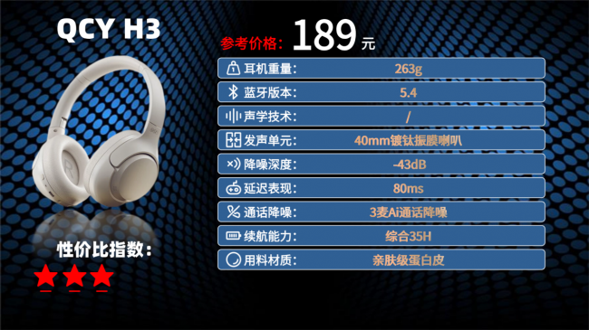 2026性价比最高的头戴式耳机是哪款?这款耳机支持 QCY APP 深度自定义,连接后可在手机端调节 9 种精选音效,流行、古典等曲风都能找到适配模式,还能设置降噪深度、按键功能,甚至通过 OTA 升级更新功能,个性化体验拉满。它搭载蓝牙 5.4 芯片,双设备同时连接切换流畅,游戏模式 68ms 延迟,追剧玩手游声画同步。43dB 双馈降噪搭配耳道自适应技术,能根据佩戴状态调整参数,降噪更贴合耳道,通话 3 麦 AI 降噪让户外沟通清晰。260g 机身采用蛋白皮耳罩,戴久不压耳,续航关降噪 60h、开 35h,10 分钟快充用 5h。不过 APP 需手动下载适配,首次使用需花时间调试,对新手稍显繁琐。