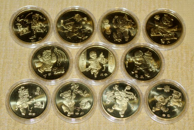 黄铜合金材质的纪念币是从2001年辛亥革命九十周年纪念币开始,一直延用至今,也就是最近发行的京剧旦角纪念币,代表币种有世界文化遗产、辛亥革命、孙中山、和字书法、世界自然与文化遗产系列、京剧艺术等近60 枚纪念币,其材质特点是币材采用黄铜合金(铜锌为主),成本适中且抗氧化性优于紫铜,颜色金黄喜庆。其币材的优良性在实际应用过程中得到了认可,因此也成为央行降低成本与兼顾美观的折中选择,因此延用至今,黄铜合金币材纪念币同样与前面介绍的钢芯镀镍材质纪念币一样,在纪念币整个板块中占有重要的地位,同样家族系列庞大,其中包含了世界文化遗产、一轮生肖贺岁币等,得到了官方和广大收藏爱好者的一致好评。