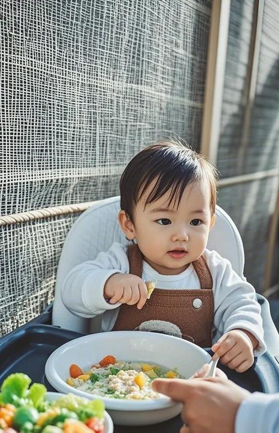 添加辅食时,先保证宝宝能稳定坐起来,并且对大人的食物表现出兴趣。