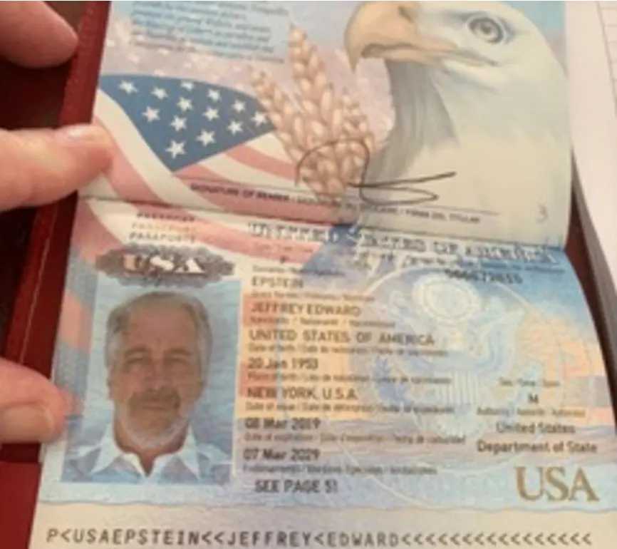 此外,照片还包括爱泼斯坦生前最后一本美国护照,上面明确标注其“因针对未成年人的性犯罪被定罪”的记录;以及一张他面带微笑、与身着类似海关制服人员握手的照片。