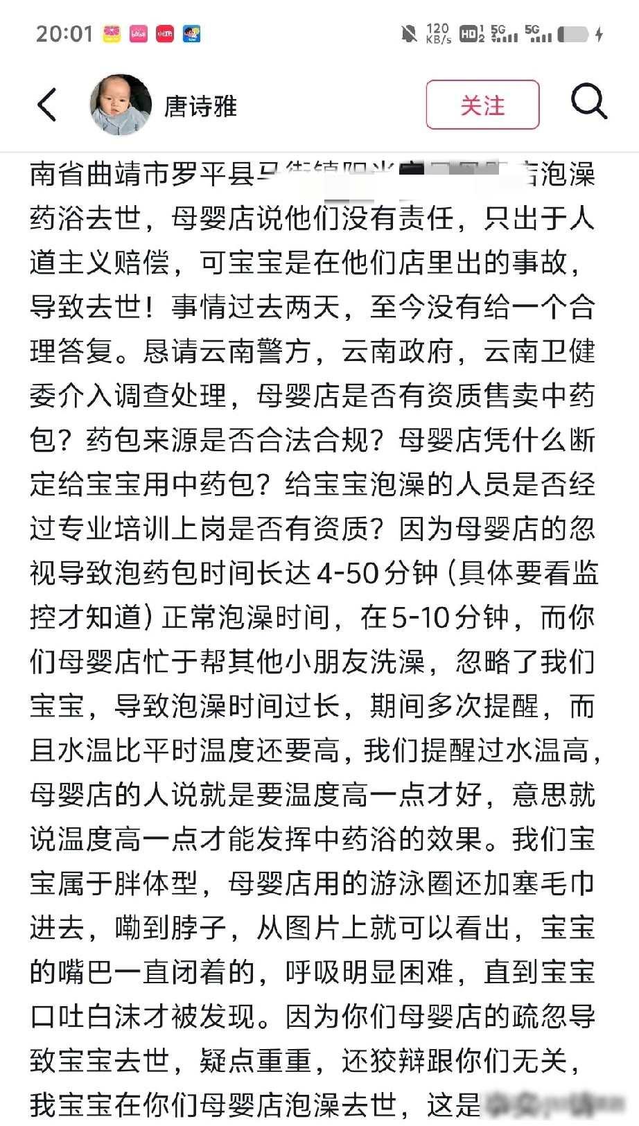 上个月在云南,有个四个月大的男宝宝,去母婴店洗药浴,结果泡着泡着口吐白沫,送到医院没能抢救回来,事情一出网上就炸开了锅,大家纷纷指责店员不负责任,其实问题没那么简单,那个孩子泡了将近五十分钟,水温高得吓人,店员还同时在照顾其他小孩,根本没能盯住他。