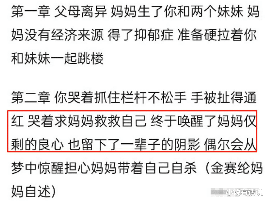 从小就经历了父母离异,甚至还险些被妈妈带去跳楼。