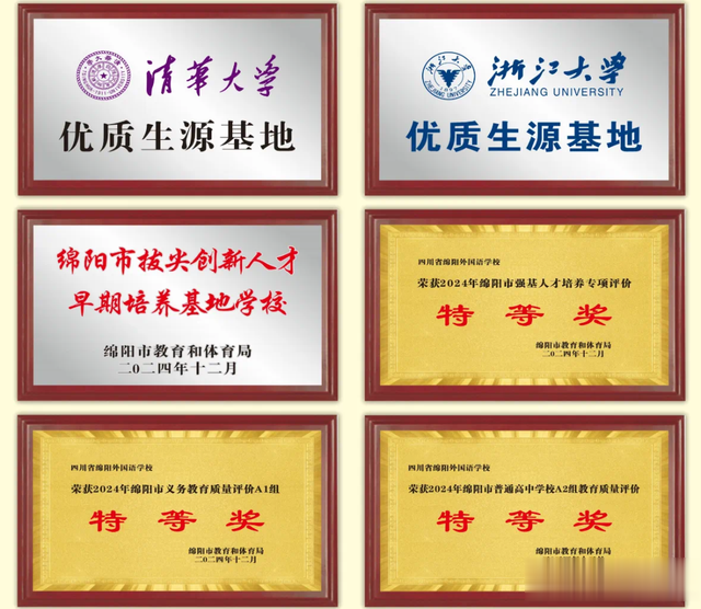 绵外连续两年荣获绵阳市“拔尖创新人才培养专项评价一等奖”“强基人才培养专项评价特等奖”等奖项,并成功创建绵阳市拔尖创新人才培养基地。