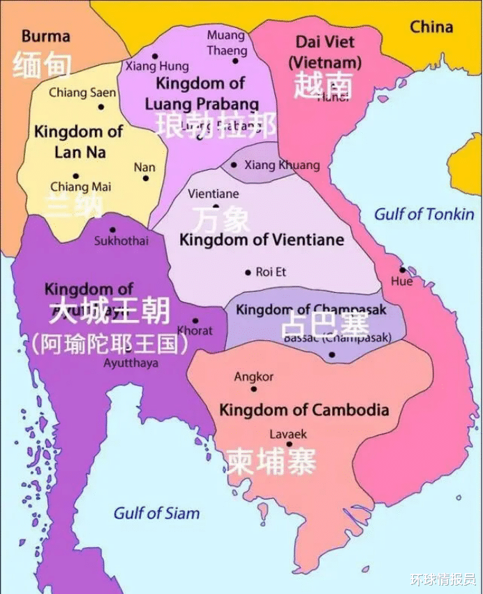 ▲19世纪初期,英国入侵缅甸,为暹罗清除了心腹大患最终,暹罗与越南达成协议,老挝归属暹罗,越南则和暹罗共同成为了柬埔寨的宗主国。