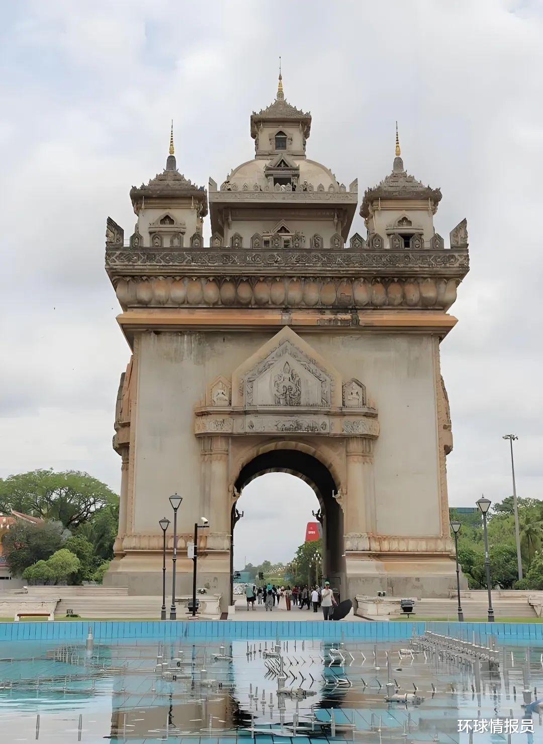▲法国大力推行“去暹罗化”政策,注入大量法系元素,图为首都万象仿巴黎凯旋门的地标性建筑泰国虽然保住了湄南河流域核心领土,没有沦为殖民地,也是东南亚唯一没有被殖民的国家,但代价却是丧失了半数国土。