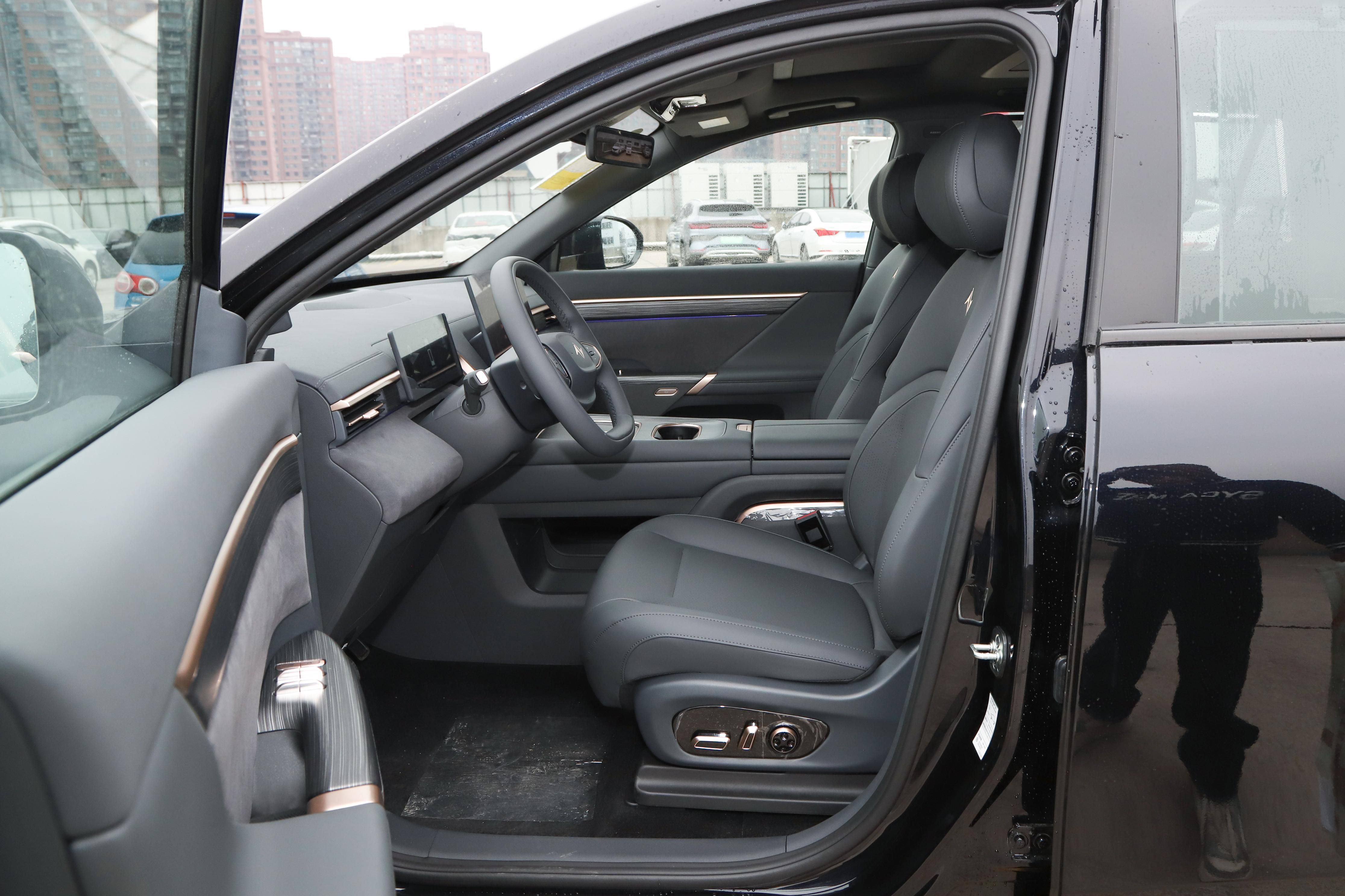 整体的舒适度表现也较为不错,座椅材质方面采用的是婴儿级的皮革材质,柔软舒适,同时配备有二排右侧零重力座椅,支持8点按摩、3档通风加热、一键躺平,同时180mm扶手间过道宽度、魔术三层后备箱,容积可达783L,整体表现良好。