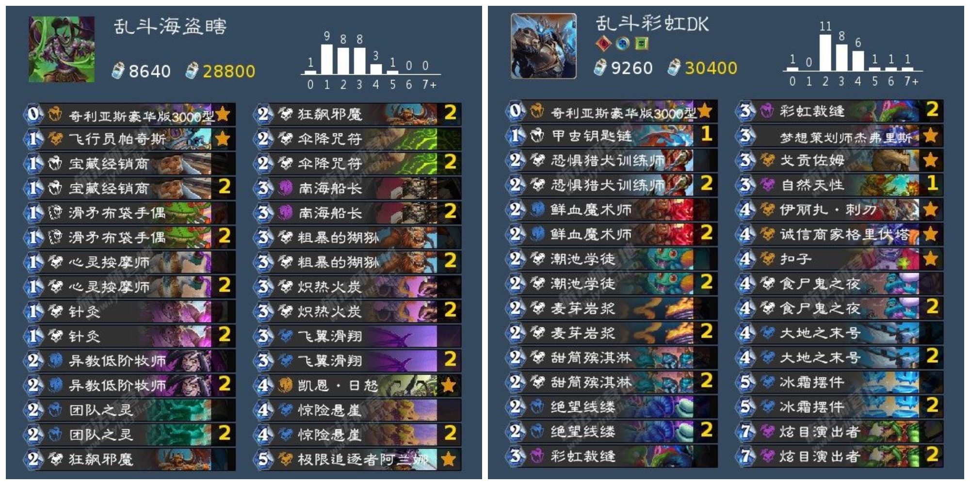 当然有些卡组影响则是非常小,比如说海盗瞎,已经比较成熟的海盗快攻瞎卡组里可以说基本上完全没有2023年的卡牌,直接拿来用就行了,而且海盗瞎的强度也比较不错。当然你也可以用彩虹多系DK来抓海盗瞎,彩虹DK损失最大的就是不能带音乐节的通灵最强音,不过在海盗瞎非常多的环境下,这一点影响没那么大,尤其是如果你已经开了新版本卡包的话,可以调整一下换上一两张艾瑞达蛮兵,这张牌可以说是海盗瞎这样的铺场快攻的噩梦。