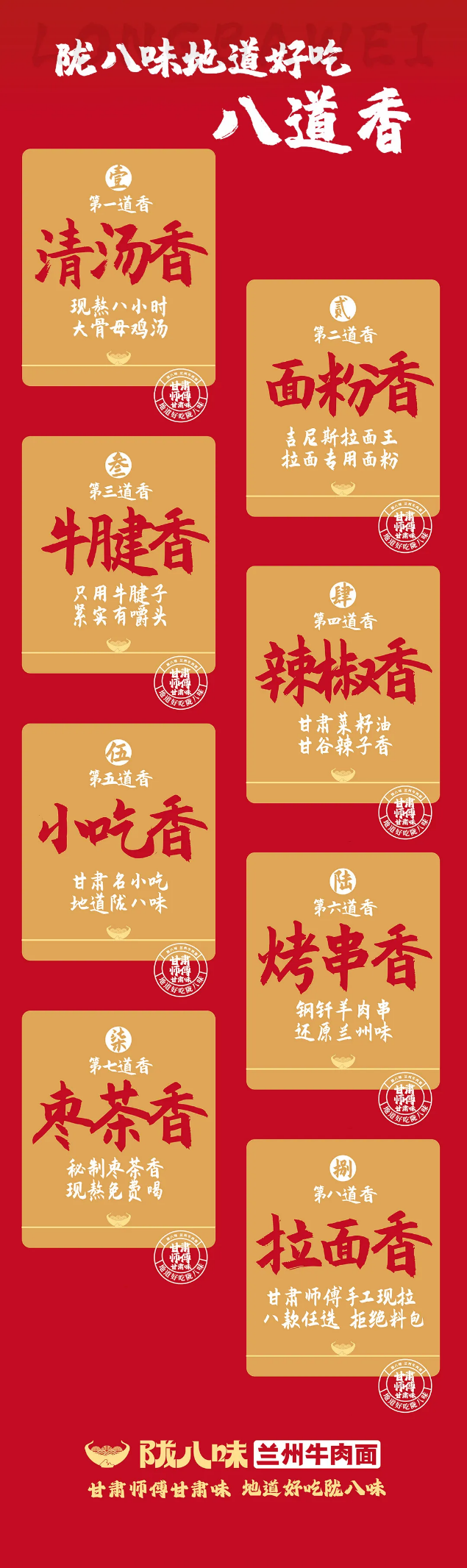 这“八道香”分别是清汤香、面粉香、牛腱香、辣椒香、小吃香、烤串香、枣茶香、拉面香。