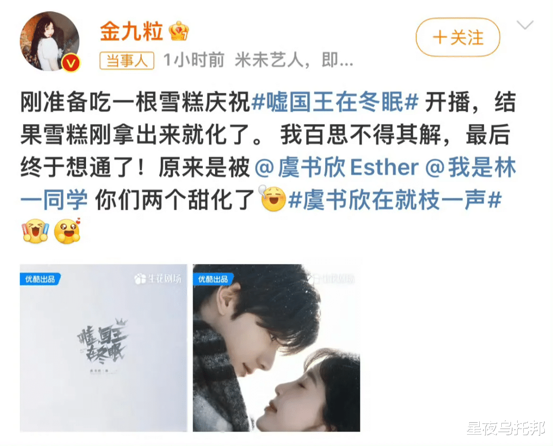 金靖在坐月子期间,碰上虞书欣的新剧《永夜星河》开播。