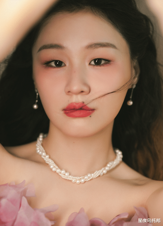 妆容也走的小清新风格,浅蓝色眼影衬得金靖更有少女感了。