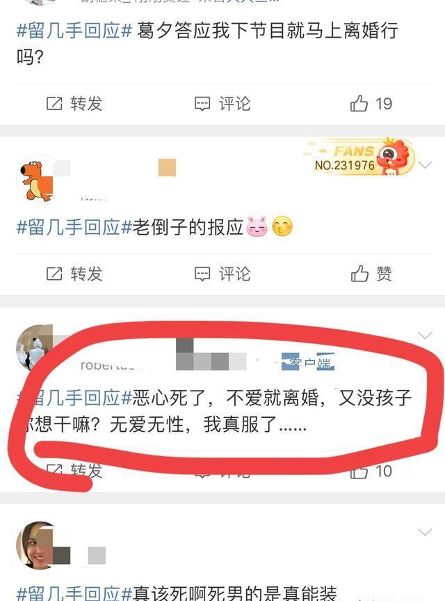 赶紧离了吧,下了节目就离,这种男的不离难道还留着过年吗?网友们已经受不了了。