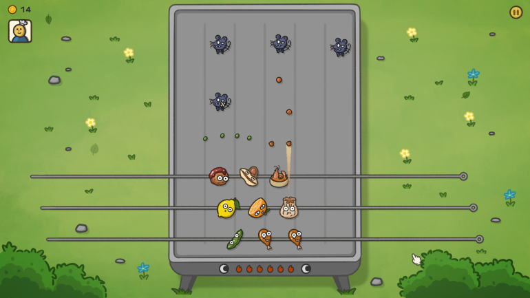 除此之外,还有反弹机制、范围伤害机制、味觉伤害机制等等细节设计。玩家不停的拖拽签子就可以实现不同层级之间的搭配组合,部署得当的话,应对以不同阵型冲上来的鼠鼠大军,迅速拖拽也能打出丰富多样的伤害效果。实际游玩的过程中无论是摆好阵型以逸待劳,还是迅速拽动签子灵活多变,趣味性都还是蛮足的。