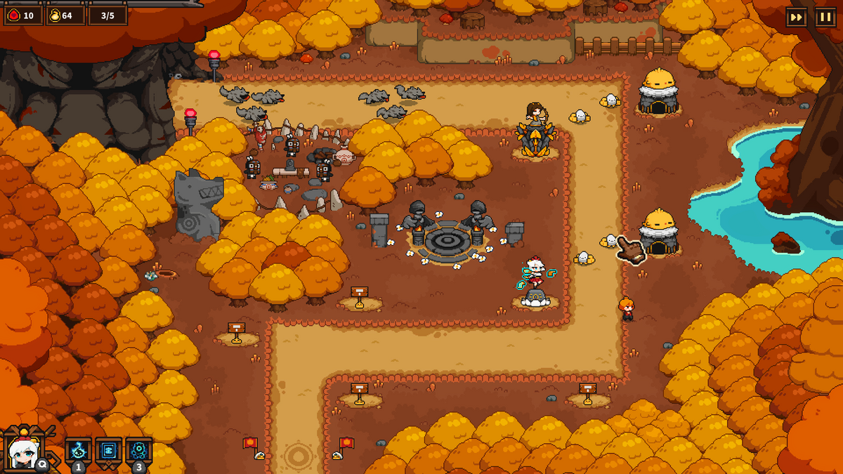 作为一款非常容易上手的塔防游戏。清晰的地图脉络、简洁明确的兵种单位,只要你玩过塔防游戏就能轻松爽玩!而本作真正的长处,胜在精细的像素动画设计、出色的画风色调所传递出的轻松和可爱感。游戏玩法上也借鉴了王国保卫战的风格,玩家需要操控一个可爱的小姑娘到许愿台上拿钱“许”出各种塔出来,然后再扛着它跑到想安置的位置上。如此跑来跑去光是看着就太萌了!除了塔之外,我们也可以召唤出不同能力、不同脾气性格的可爱巫女,来为我们的战斗提升助力。作为一款小而精、体验舒适的塔防,可以说是一部必玩之作啦!