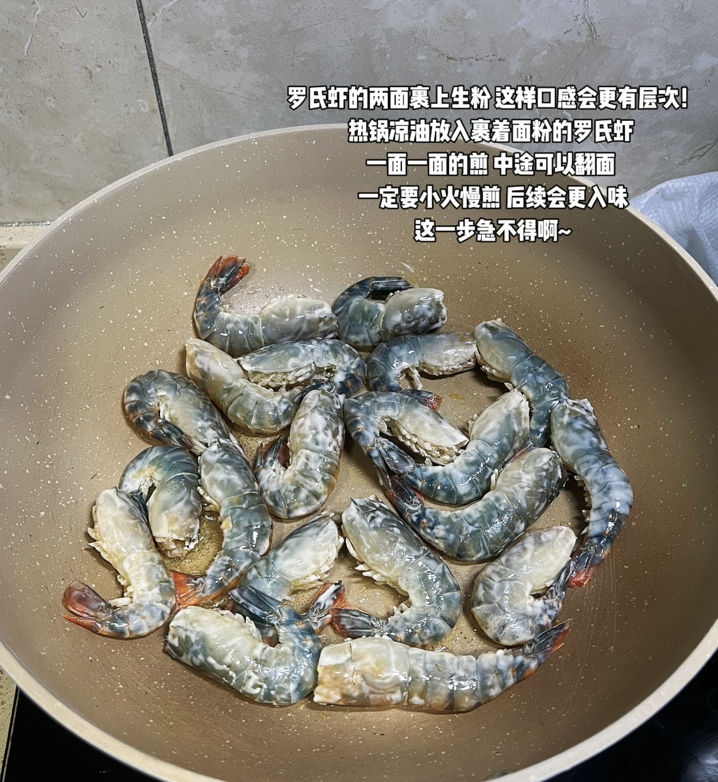 装盘时,可将黄瓜片或生菜叶铺底,既清爽解腻,又增添色彩对比。将虾整齐摆上,淋上剩余酱汁,再撒点葱花或芝麻点缀。此时的罗氏虾,虾肉紧实弹牙,酱汁微稠透亮,芥末的辛辣在加热后已变得温和,留下的是回甘与余韵,鲜、甜、辛、香在口中层层展开,令人欲罢不能。