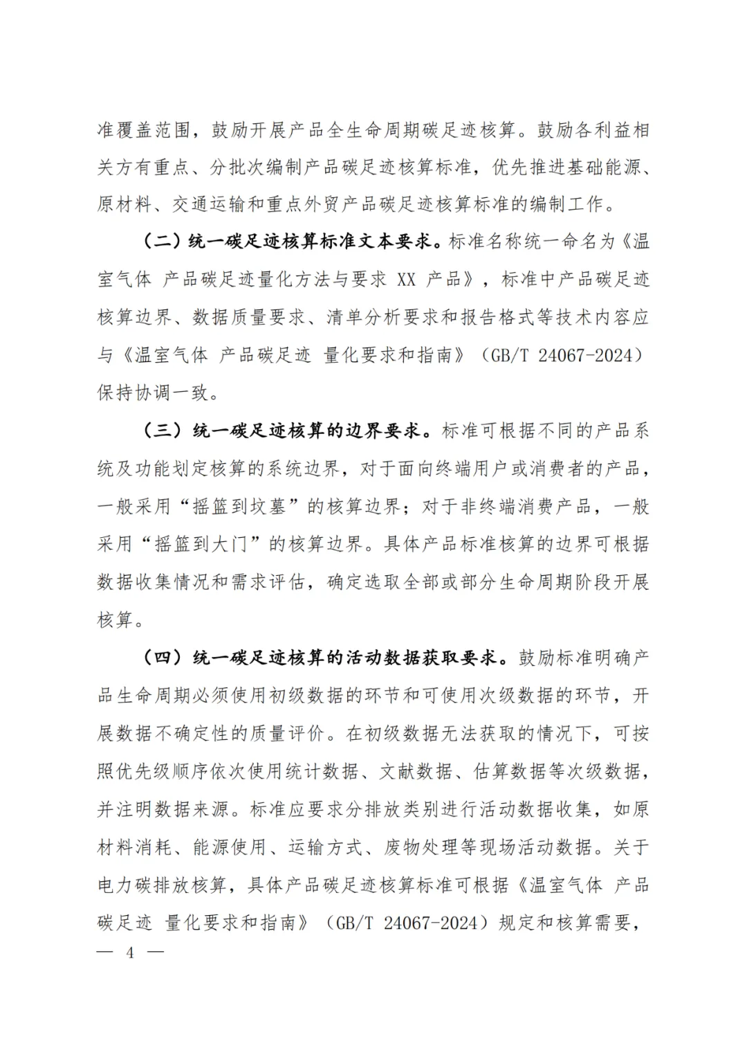 四是加强碳足迹核算标准国际交流衔接。包括加强国内外碳足迹标准协调衔接,积极参与碳足迹国际标准制定,推动碳足迹标准国际交流合作。