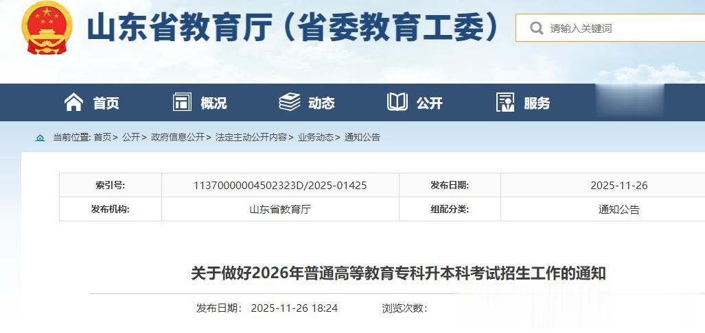 例如2026年山东专升本的政策,就是从山东省教育厅发出来的。