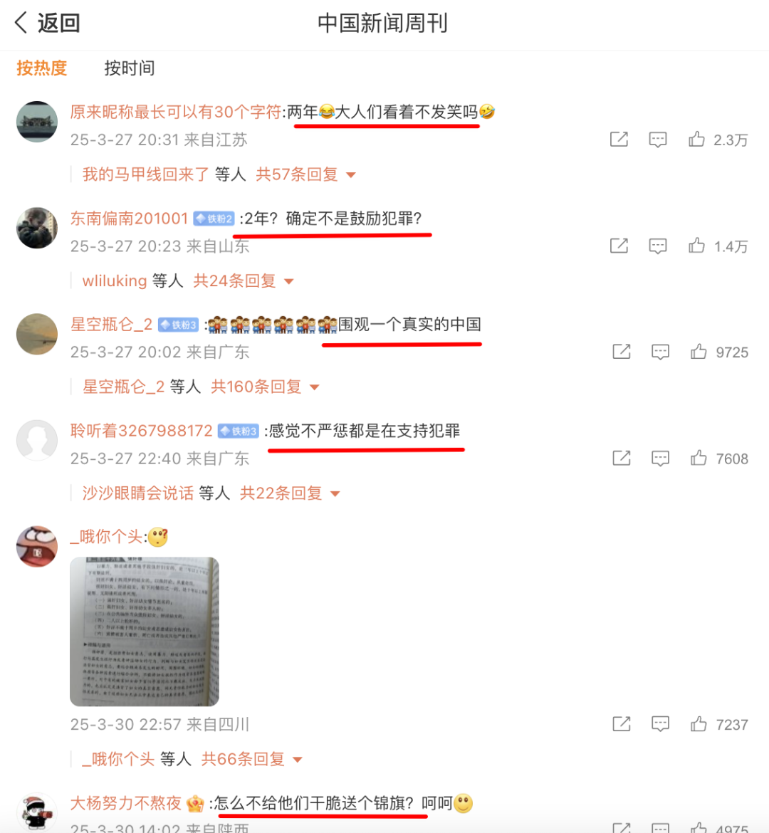 说实话,我也不知道。但是同样从新闻下面的评论区里,你能轻而易举的看出人们的态度:两年?你们要不要看看自己在说什么,大人们看着不发笑吗?