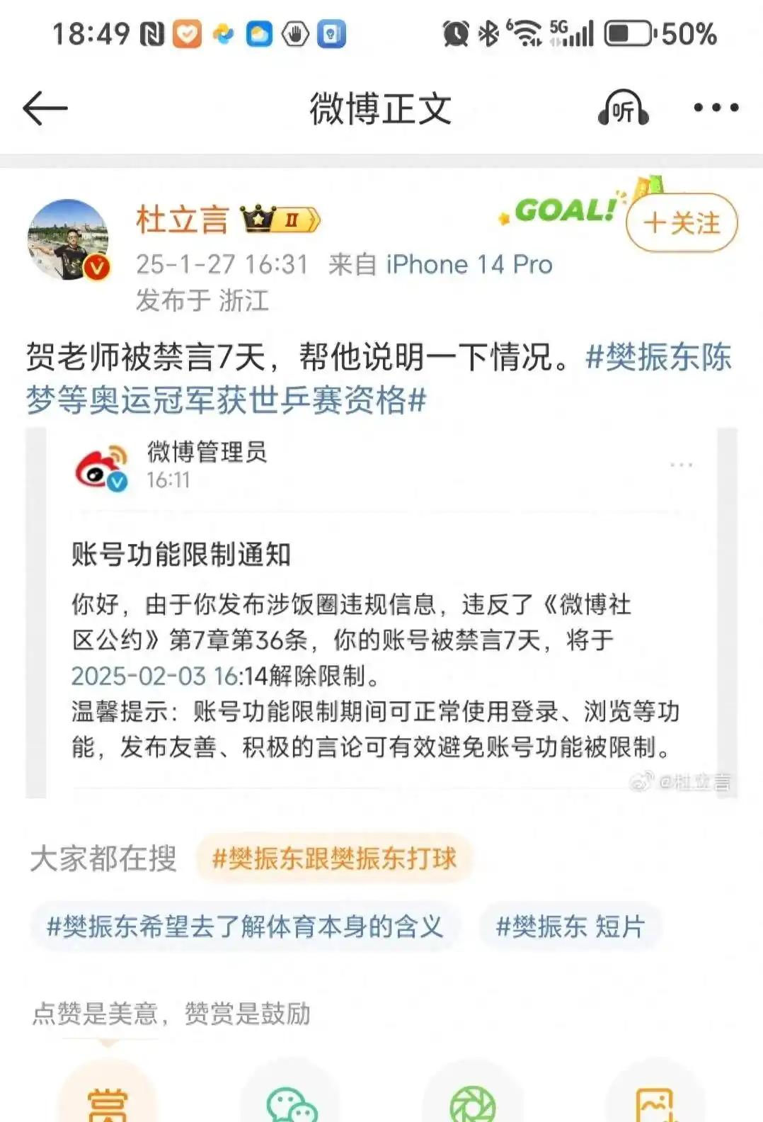 贺晓龙曾被禁言7天,可解禁后变本加厉。最近《人民日报》等官方媒体批评贺晓龙追逐病态流量。国家乒羽中心领导表示,将严惩煽动情绪的自媒体博主。