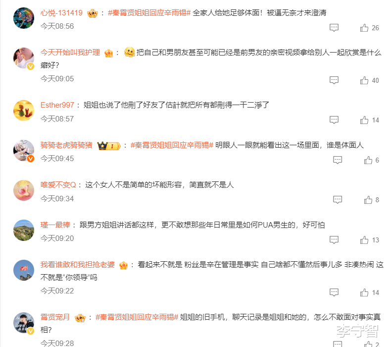 其实这种方式和招数,娱乐圈这几年早就屡见不鲜,比如2024年,秦霄贤这样不算多红的明星的前女友辛雨锡,也是娱乐圈不知名演员,就通过爆料秦霄贤和自己的隐私,在微博和直播间刷屏,炒得沸沸扬扬,赢得不少人同情支持还卖货。然后秦霄贤虽然没被彻底淡出娱乐圈,却从湖南卫视何炅新节目出局,资源多少受到些影响。