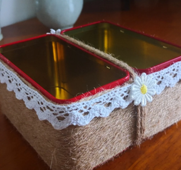 不管是铁制的茶叶盒还是月饼盒或者是其他的糕点盒,都可以按照这个方式进行改造。
