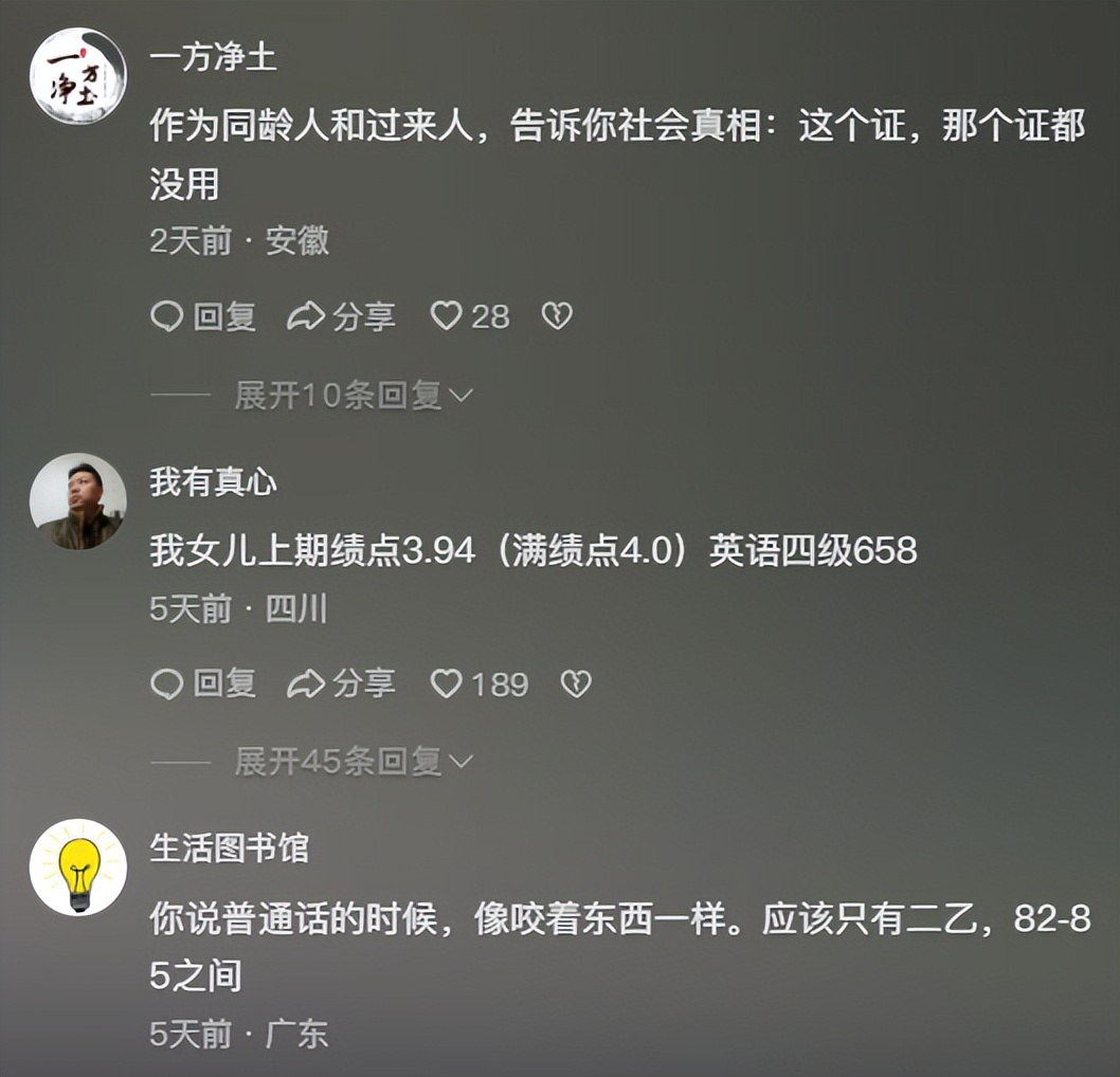 简而言之,普通话考试要“说得好”。在朗读和自由表达环节,考生需要展现出良好的语言组织能力和逻辑思维能力。能拿到一级证书的考生,通常能够在短时间内组织好语言,有条理的表达清晰。目前看,唐尚珺离着一级还有十万八千里。预估最好也就达到二级乙。