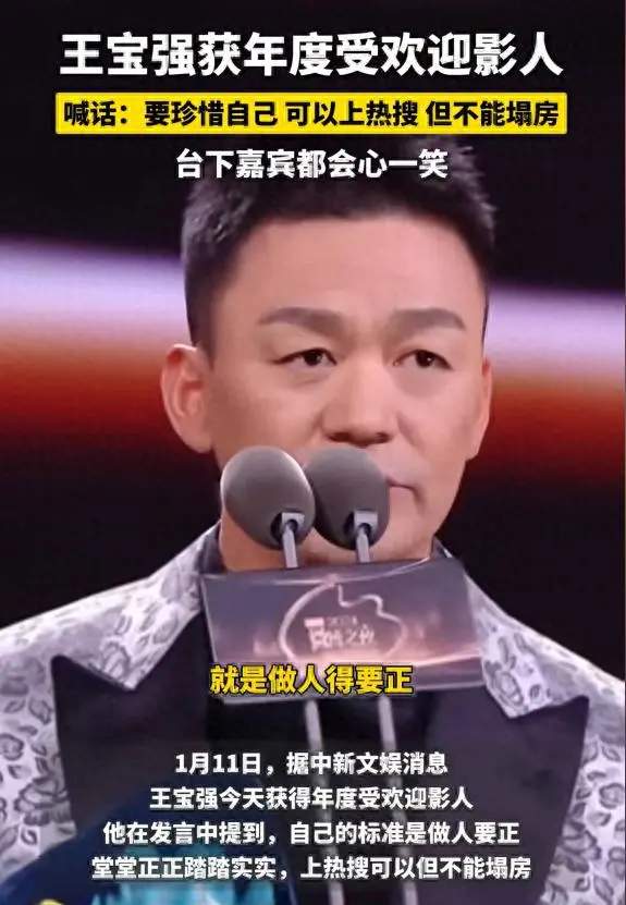娱乐圈多个明星获得奖项,其中王宝强获得:年度最受欢迎影人奖!他的得奖感言:大家隔三差五的就上热搜,上热搜还没塌房,还能站在这领这份荣誉,一切都是来之不易。要珍惜自己,上热搜可以,但是千万不能塌房。