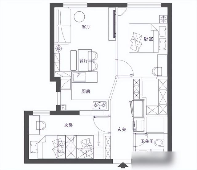 放弃华而不实的装饰,聚焦动线和功能,53平也能玩出洄游路线。