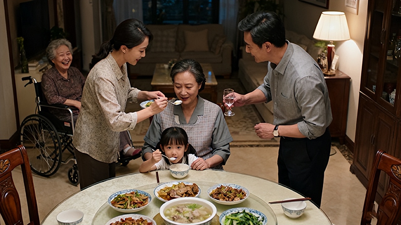晚上,一家人坐在餐桌上吃饭,气氛很融洽。念念不停地给李桂兰夹菜,嘴里说着:“兰姨,多吃点,这个鱼好吃。”