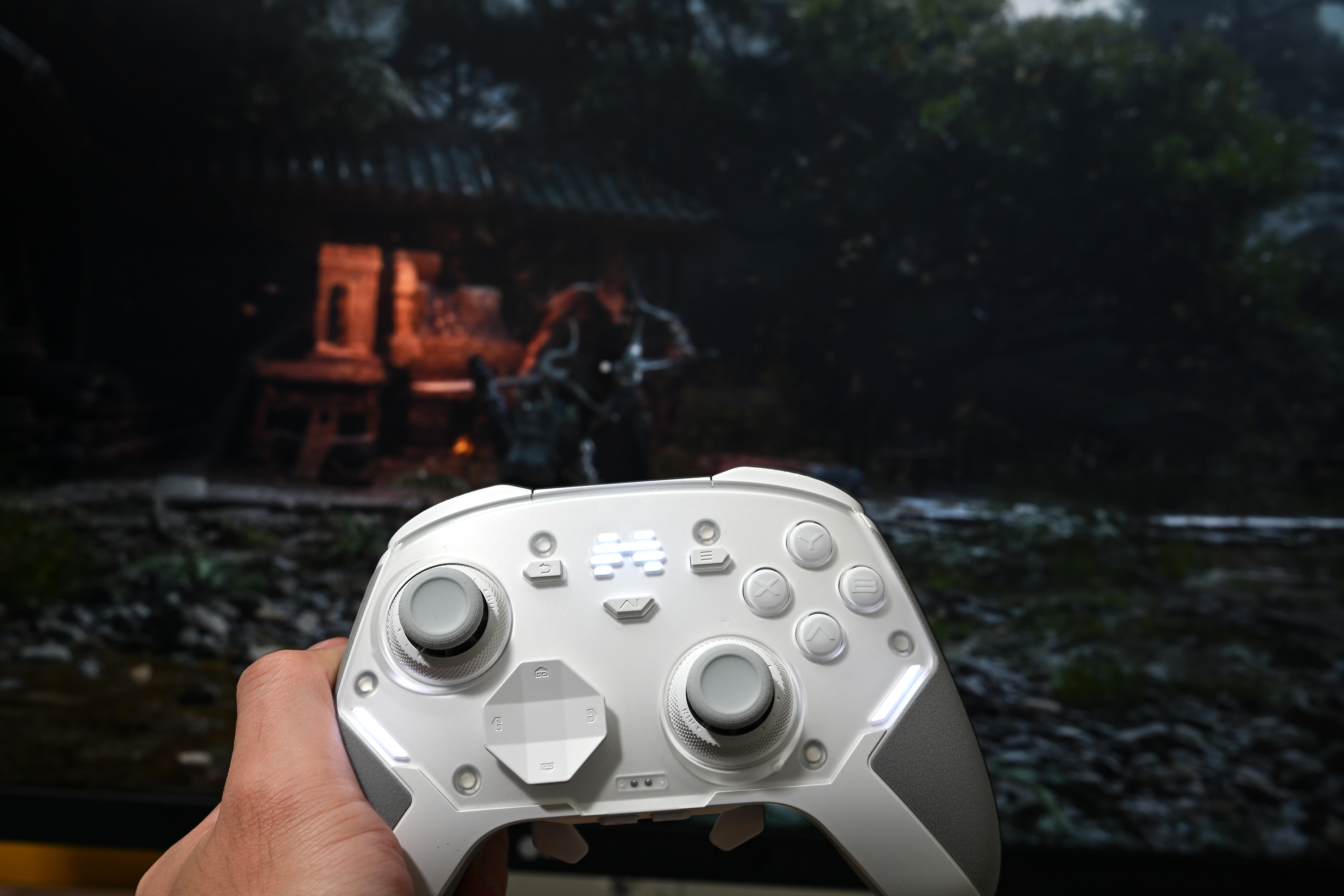 在《黑神话:悟空》这类动作角色扮演游戏中,光轴3.0按键触发迅捷,大幅提升完美闪避的成功率,配合可编程肩键与流畅摇杆,操作行云流水。双切震动扳机与双马达震动则进一步强化了游戏沉浸感。