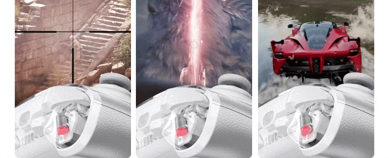 手柄顶部的双切震动扳机支持一键切换两种模式:微动短行程(0.3mm触发,手感清脆,适合射击游戏点射)和线性长行程(8mm行程,搭配震动马达,沉浸感强,适合赛车游戏)。