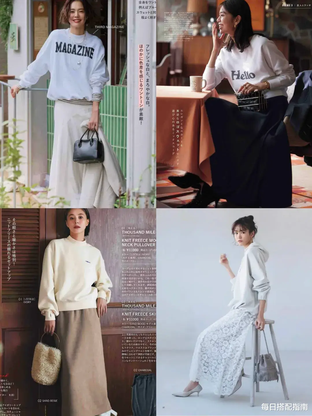 ✨ 核心公式:合身卫衣(袖长过腕)× 直筒迷笛裙(裙长=膝下10cm)🎯 关键技巧: 让宽松感适度收敛,保持得体又有层次感。